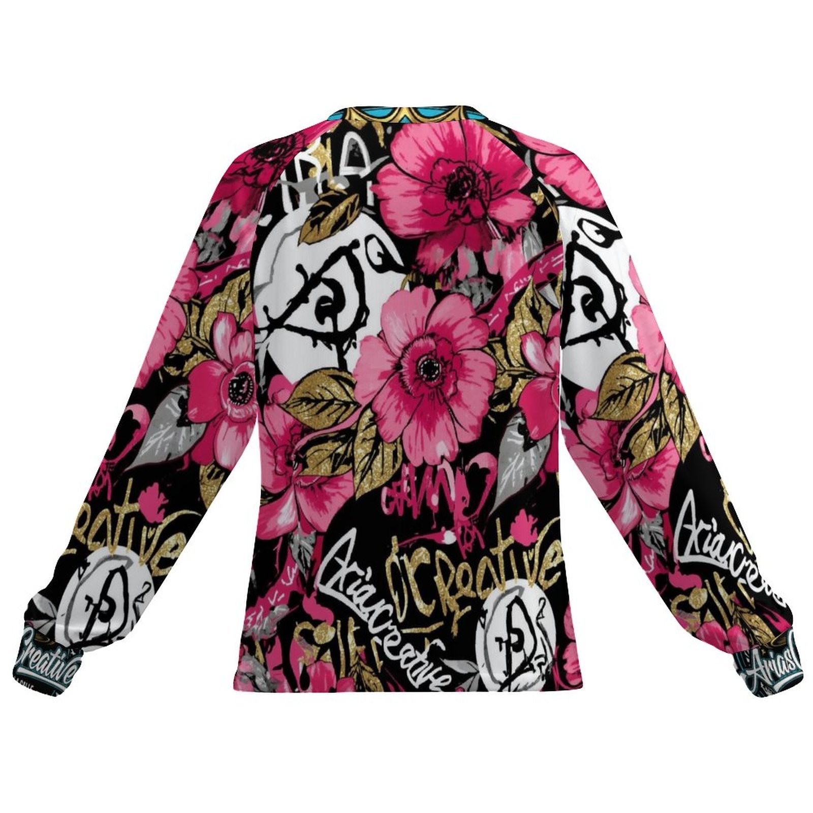 Camiseta de Manga Larga Rápido Secado para Mujer “AriasCreative Flores” (Estampado Completo – 180gsm)